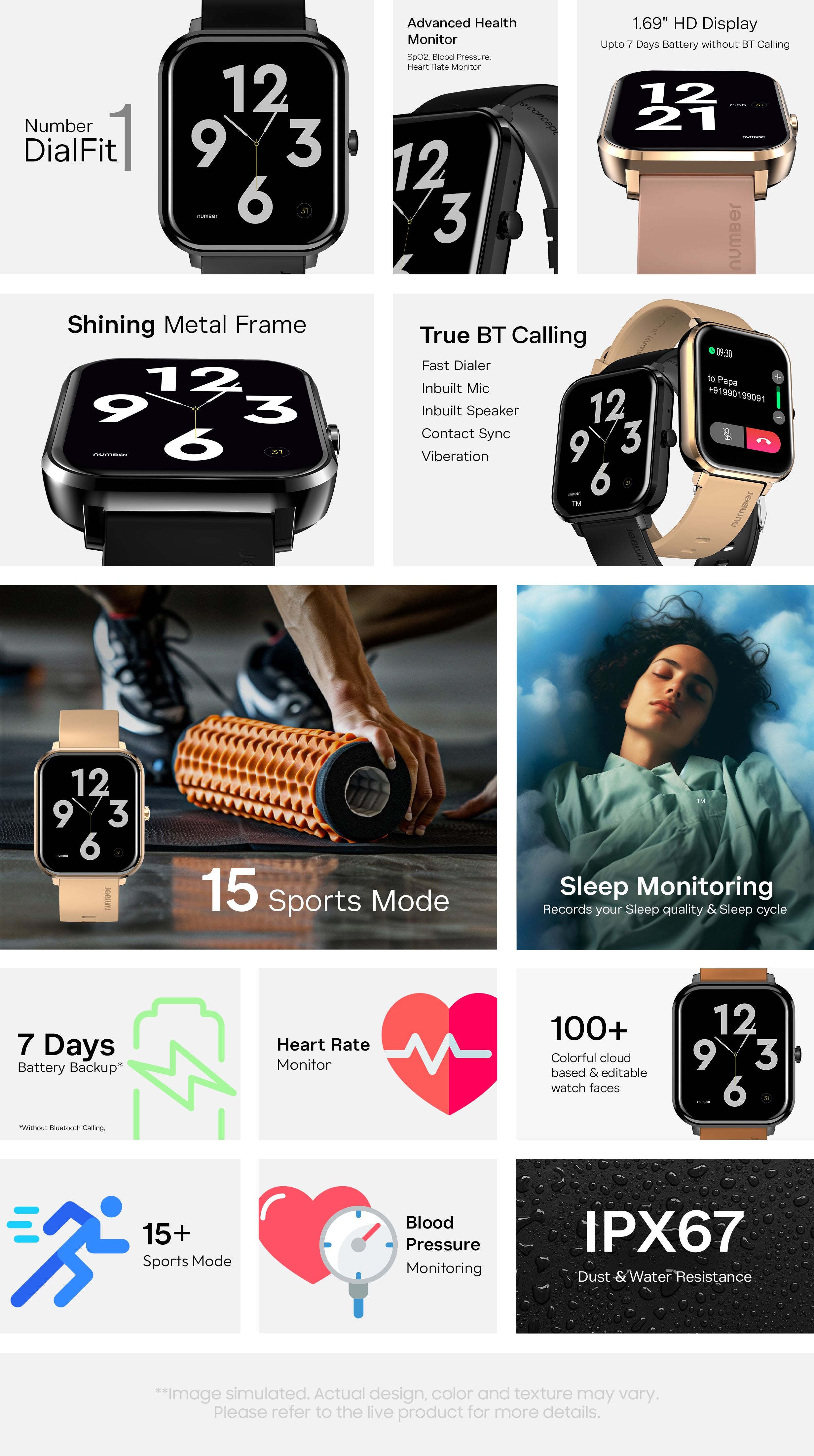 BT Calling | 1.69" HD Metal Display | 100+ Watch face | Heart Rate | Blood Pressure | SPO2 | IP68 | 7 Days Battery | 2 Colors Straps