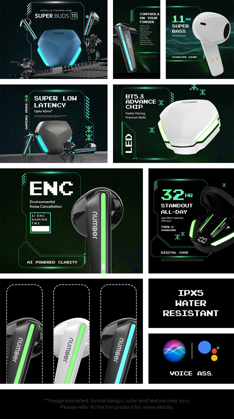 AI ENC Gaming TWS Earbuds | Low Latency 45MS | Upto 32Hrs Playback Bluetooth Headset
